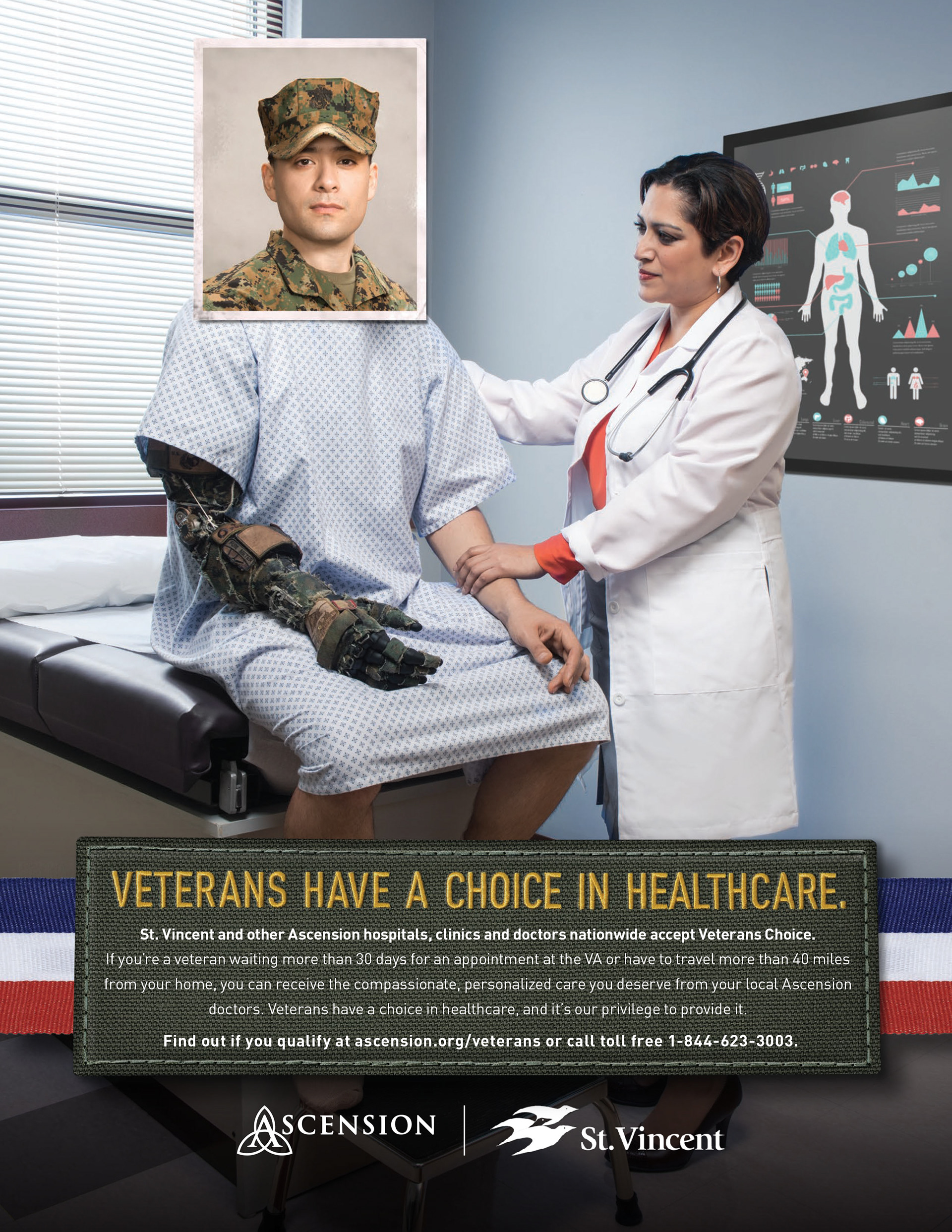Ascension Hospitals announce that they will now treat United States Veterans. This campaign was created with real Veterans, Doctors, and staff. TV, Print, Digital.