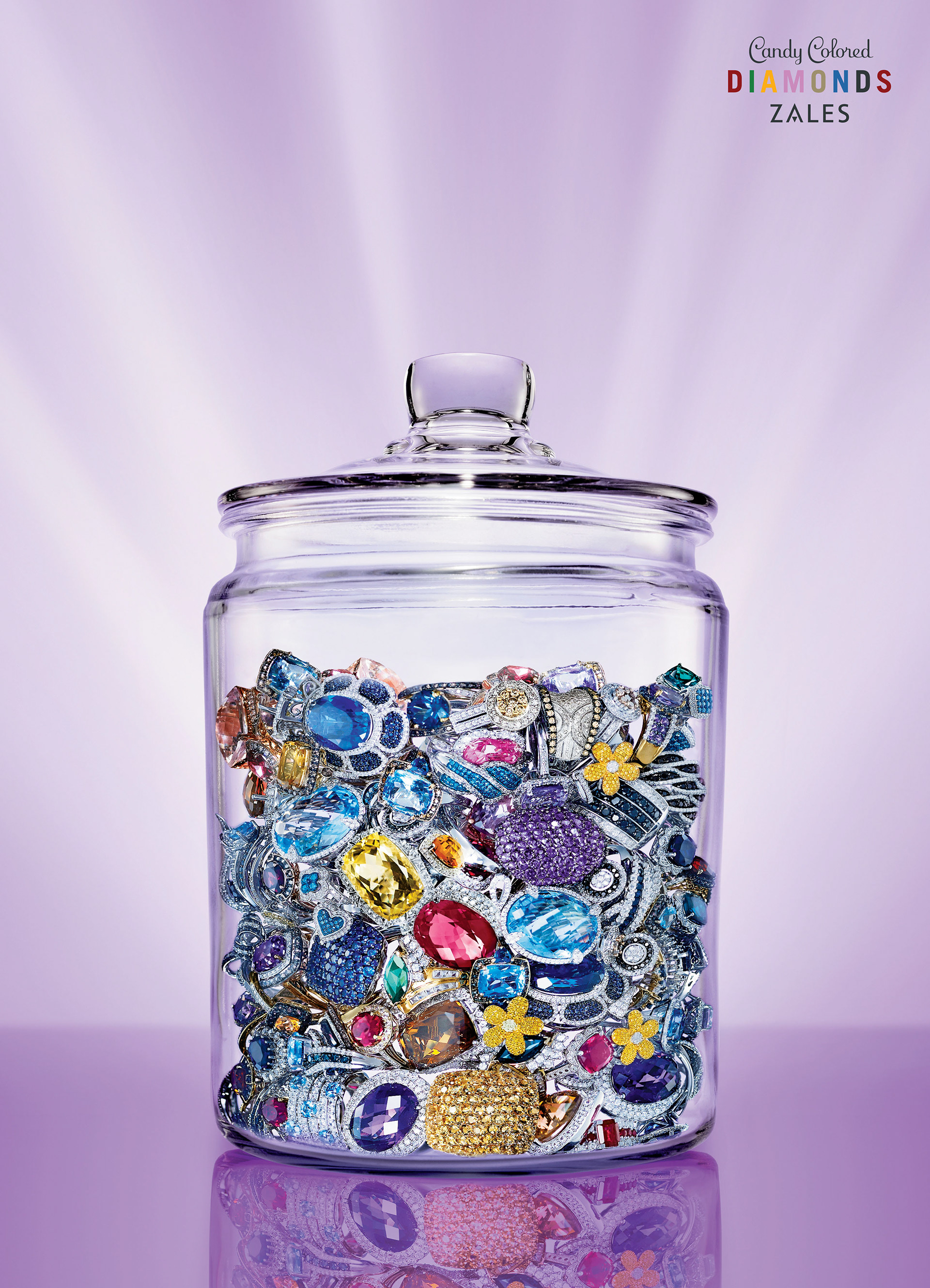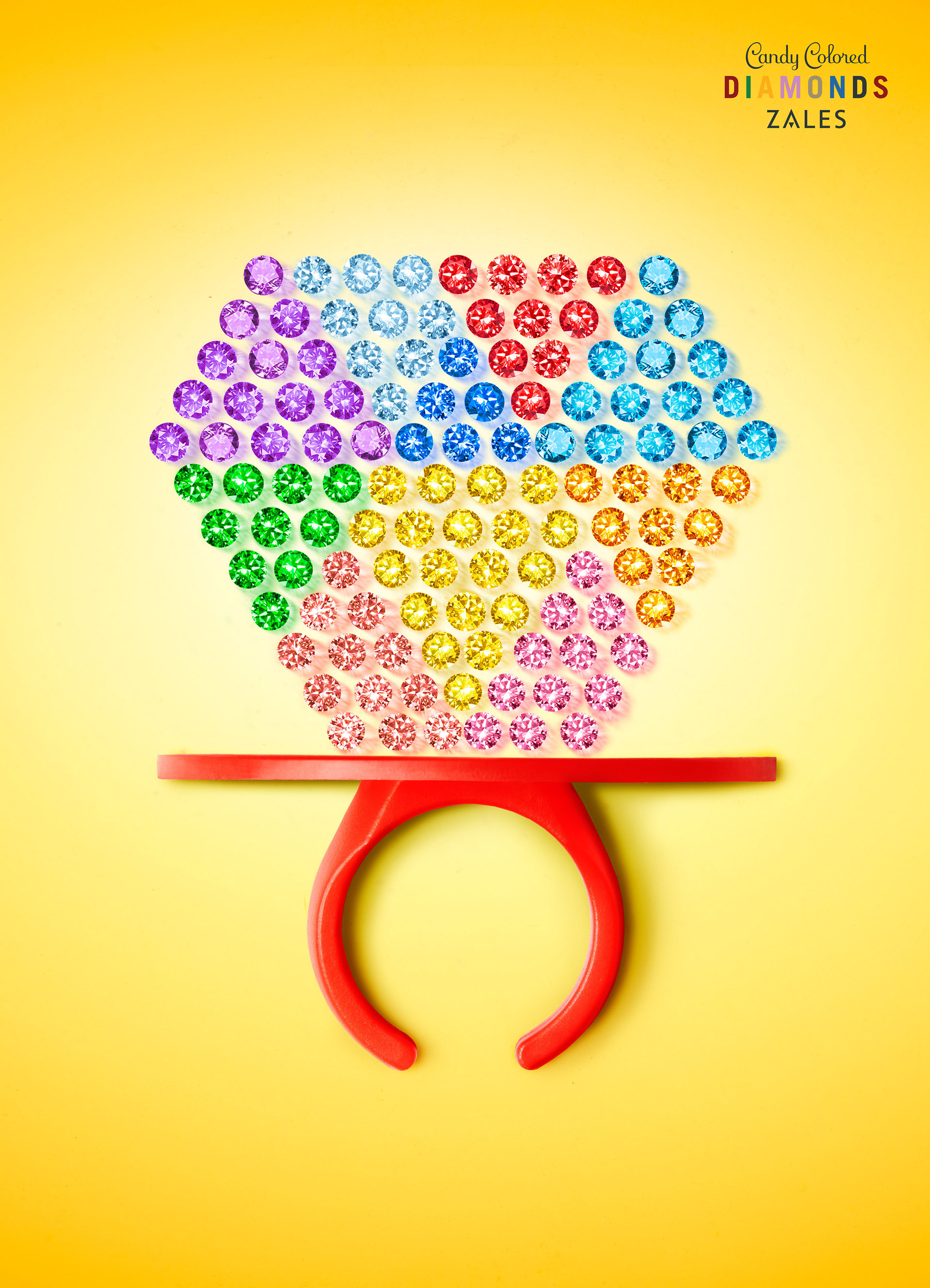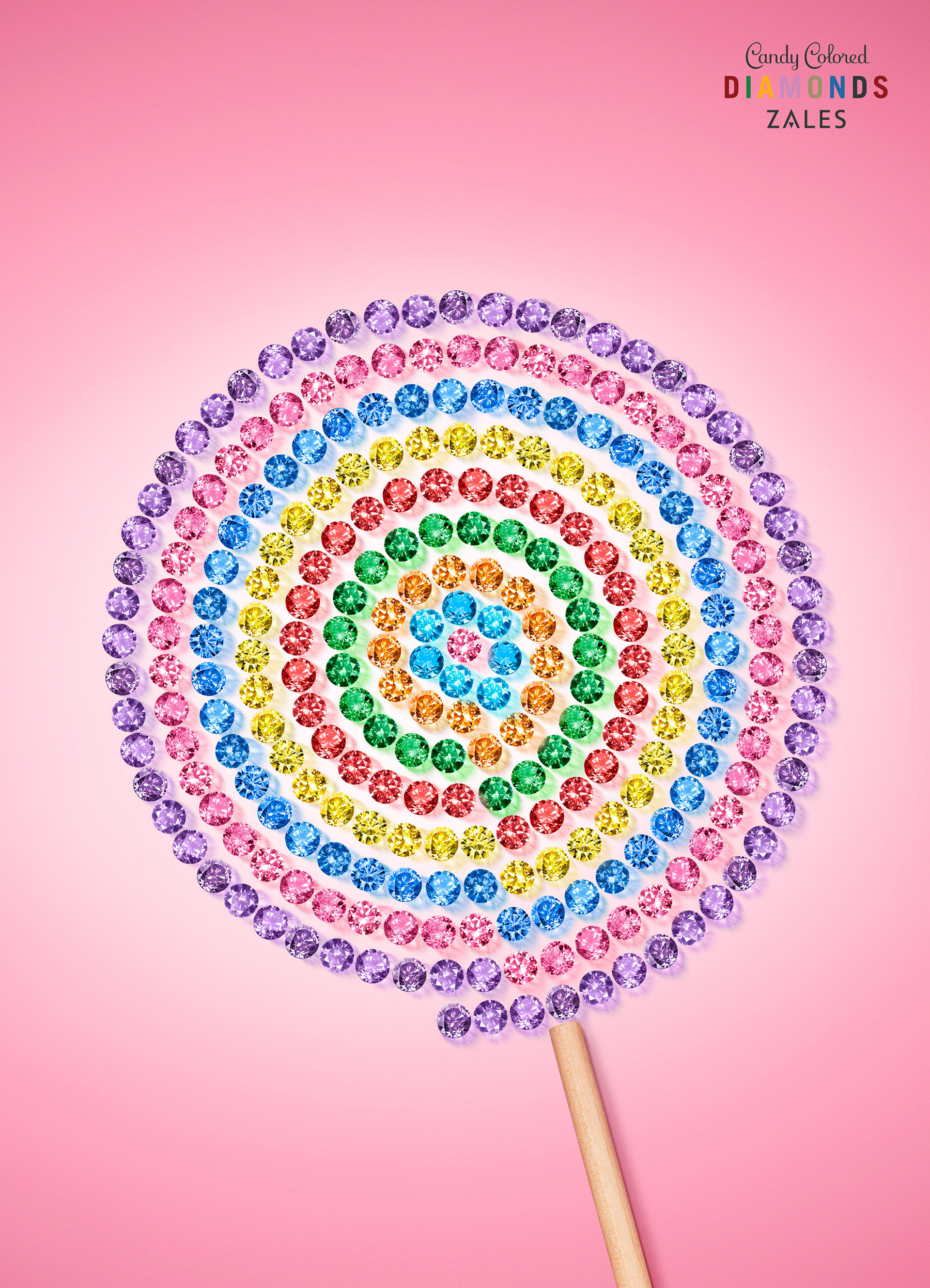 Zales has a line of colored diamonds and stones that needed a new identity. Candy Colored Diamonds. TV, print, in-store, web banners, packaging.