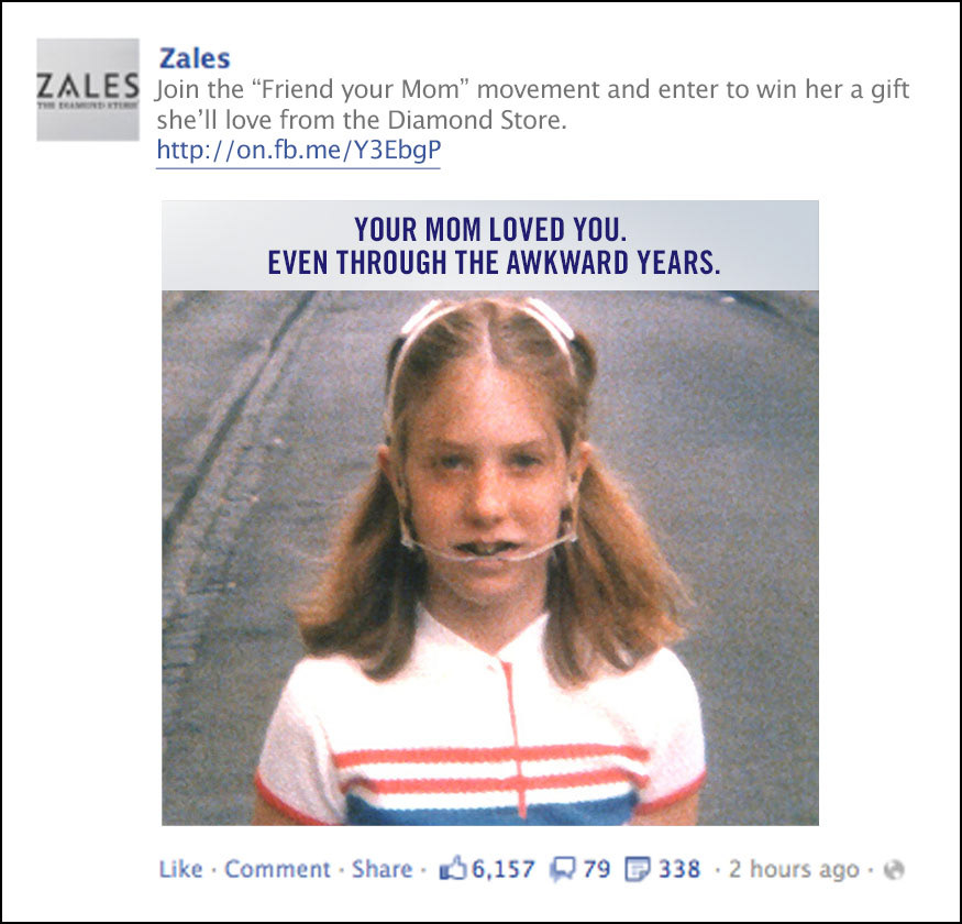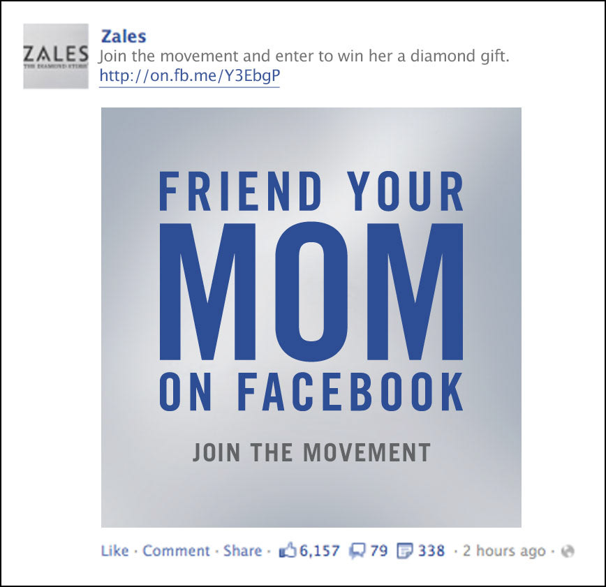 Zales asked us to come up with a social campaign to promote Mother's Day. We came up with the ultimate public display of affection for your mom. Friend her on Facebook.